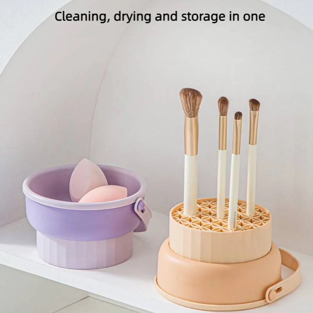 Welcome to Total Glow Market! Keep your makeup brushes spotless and organized with our 3-in-1 Makeup Brush Cleaner. Features a silicone tray designed for cleaning, drying, and storing brushes all in one. Textured surfaces ensure thorough cleaning for all brush sizes. Compact and durable, perfect for home or travel use. Easy to rinse and reuse, saving time and effort. Helps maintain the quality and lifespan of your brushes. Ideal for cleaning foundation, eyeshadow, blush, and contour brushes. Promotes better makeup application with soft, hygienic brushes. Lightweight and convenient for everyday use. Upgrade your beauty routine with this practical and versatile brush cleaning and storage tool!